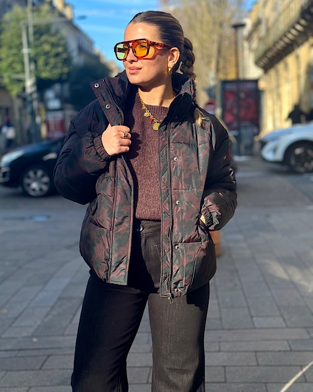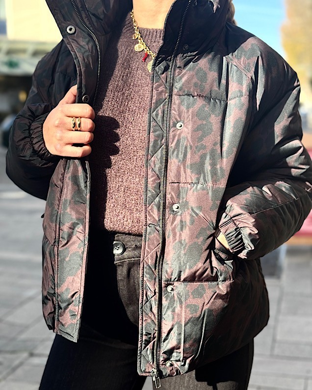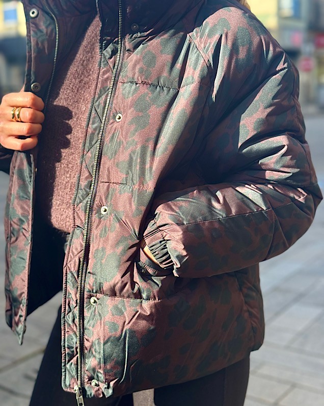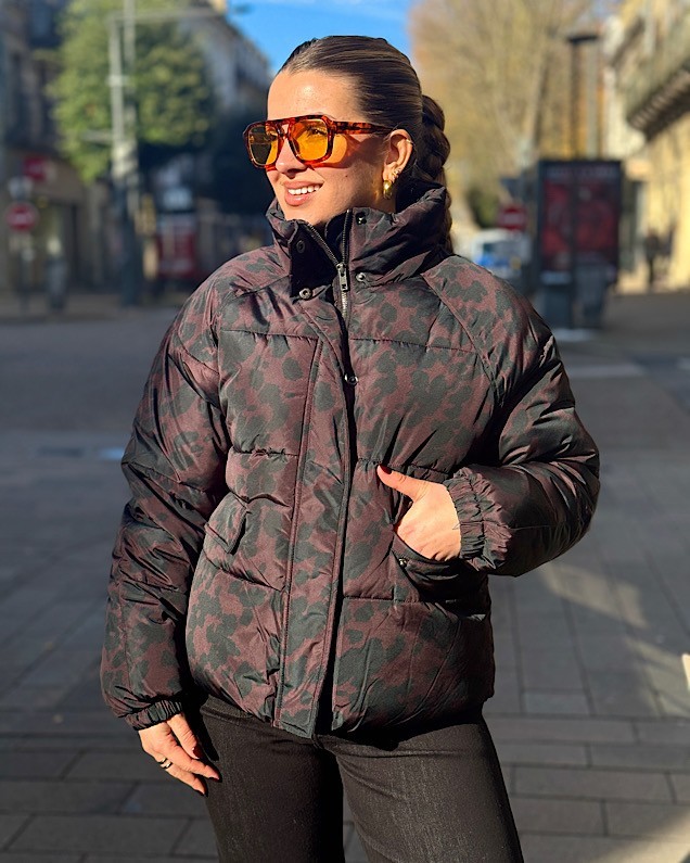 Doudoune léopard chocolat et noir.