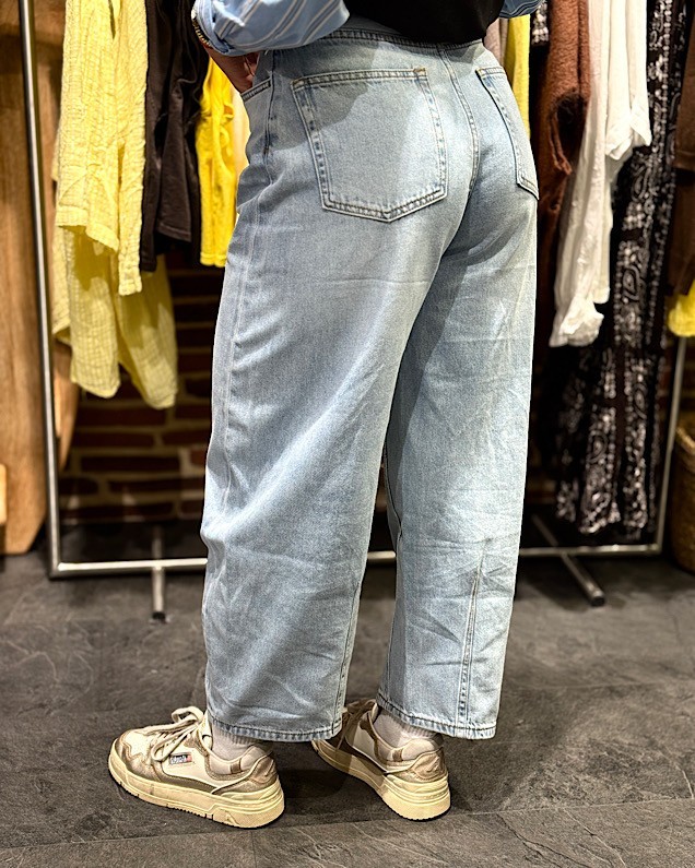 - Coupe barrel (jambe arrondie et resserré en bas)