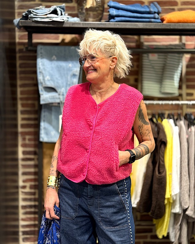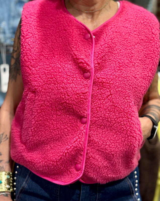 Gilet moumoute rose.