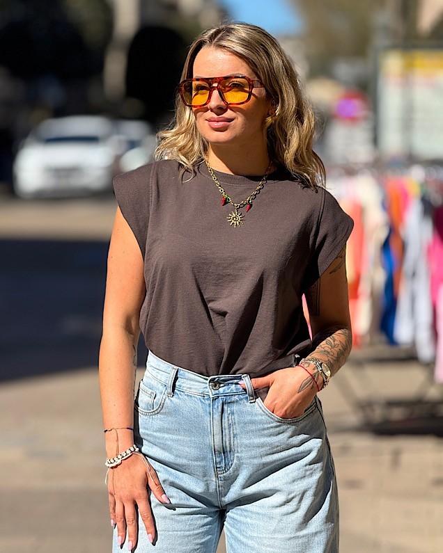 Craquez pour cet indispensable à avoir dans notre dressing, un tee-shirt en coton épais avec des détails aux épaules pour bien structurer la silhouette.