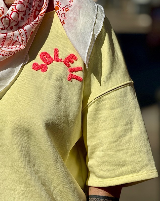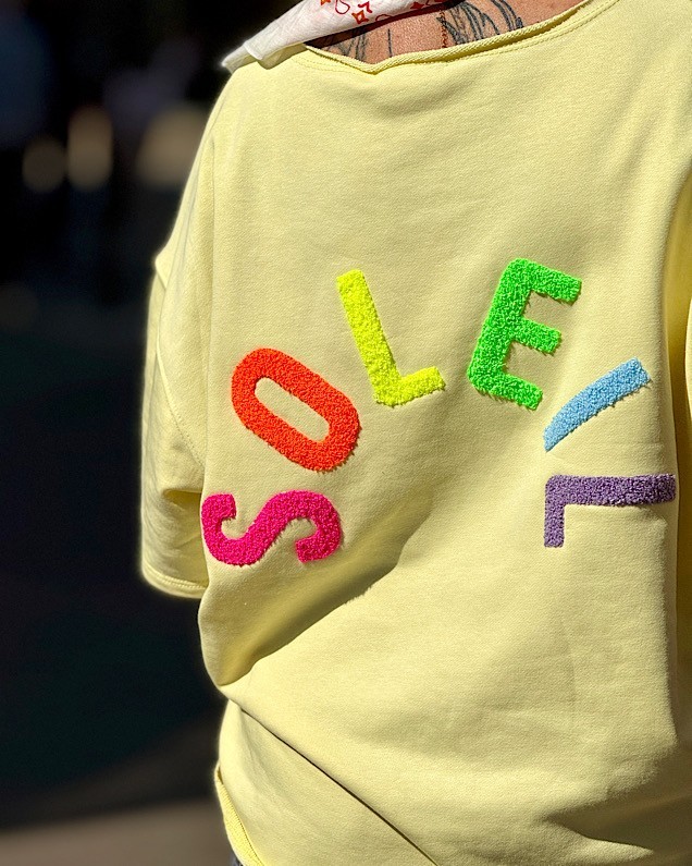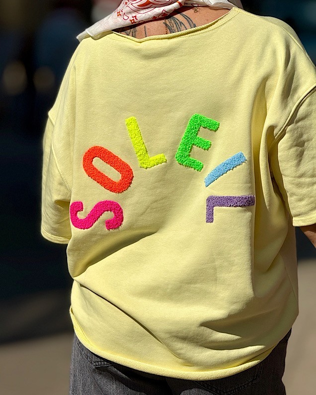 - Inscription « Soleil » jaune sur le devant et au dos