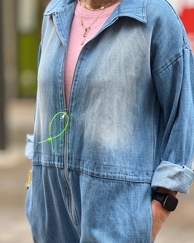 La combinaison Banditas séduit par son denim ultra souple offrant un confort optimal et une grande liberté de mouvement grâce à sa coupe loose.