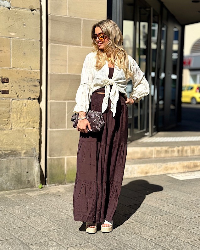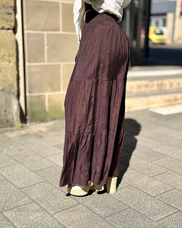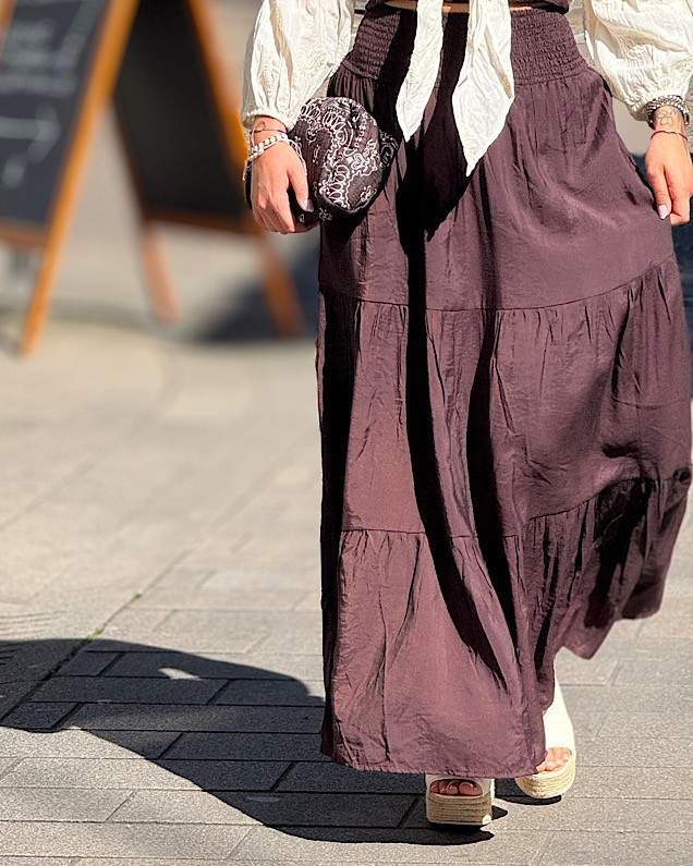 Jupe fluide à volants, confortable, élégante et féminine, idéale pour un look bohème.