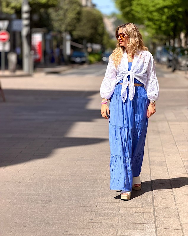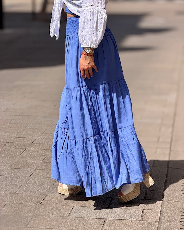 Jupe fluide à volants, confortable, élégante et féminine, idéale pour un look bohème.